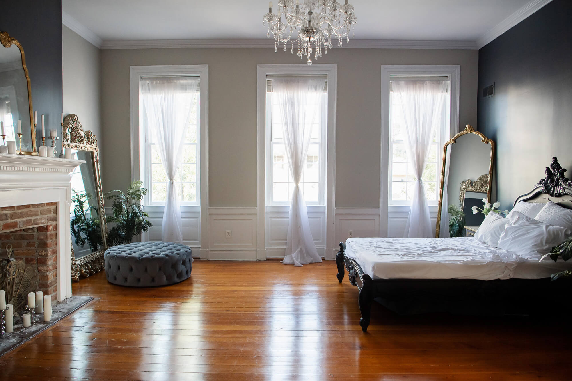 We have a private studio located in downtown Fredericksburg, VA. Our studio offers an Exclusive Client Closet, a Private Dressing Room & bathroom, and a beautifully decorated studio with Hollywood Glam deco